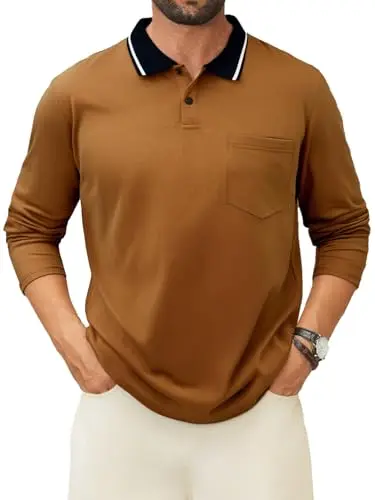 Polos de algod贸n de manga larga para hombre, polos de moda, camisetas cl谩sicas b谩sicas de trabajo con cuello y bolsillo