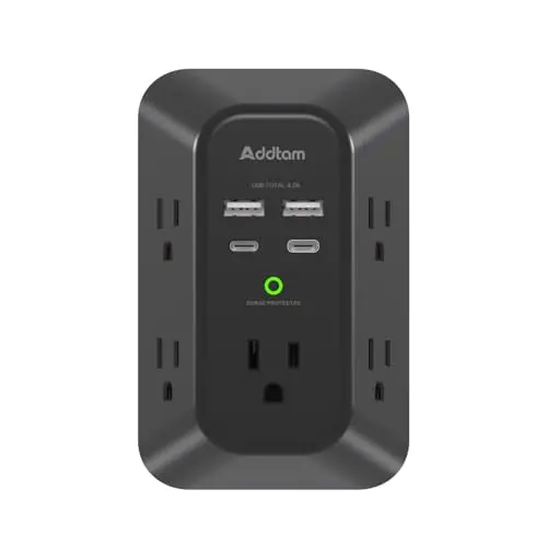 Protege tus dispositivos con este extensor que convierte 1 enchufe en 5, incorpora 4 puertos USB con carga rápida y cuenta con un diseño estable y seguro.