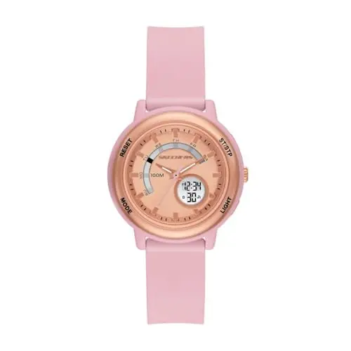 Reloj con caja de 37mm, movimiento analógico-digital y correa de silicona ajustable. Resistente al agua hasta 100m.
